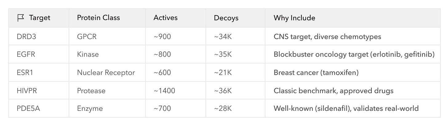 Axon only found SMILES strings for the decoy ligands of a few targets, so it generated its own 3D conformations from these, resulting in inconsistent preparations. This is likely attributable to the connectivity issues preventing Axon from being able to search the archive thoroughly.
